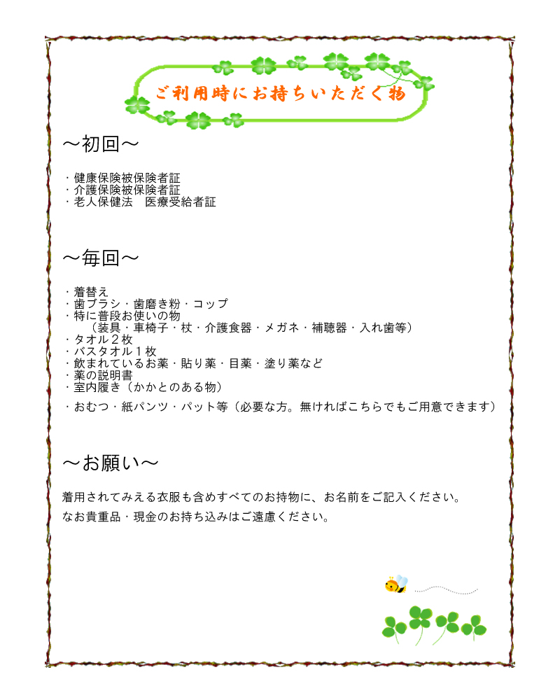 ご利用希望の方は、担当のケアマネジャー様にご相談ください。