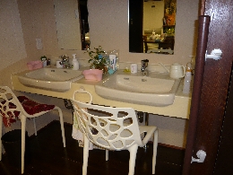 デイルーム(食堂兼機能訓練室)の中にあります。食事前の手洗い、食後の口腔ケアの際にご利用いただいております。